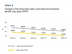 The median total remuneration gender pay gap reduced by 1.9pp over the year, building to a 3.7pp decrease since 2020-21.