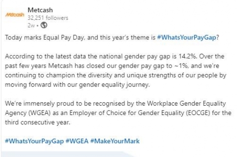 How did you mark Equal Pay Day this year? Here at WGEA it’s a bittersweet occasion – the gender pay gap actually went up this year but Equal Pay Day is a great opportunity to raise awareness of the issues and solutions.
