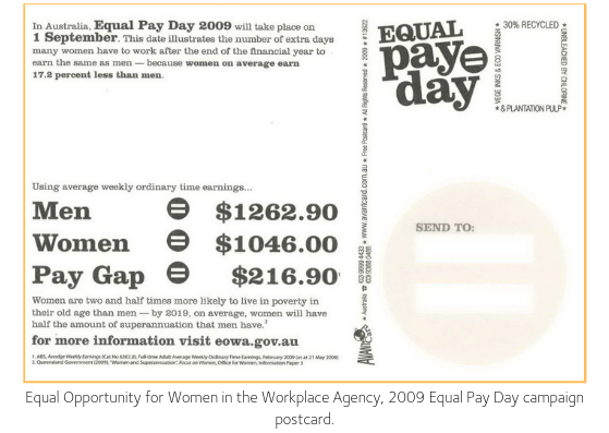 In Australia, Equal Pay Day was an initiative of the Agency’s predecessor the Equal Opportunity for Women in the Workplace Agency. First calculated in 2008, the annual initiative has been embraced Australia-wide.