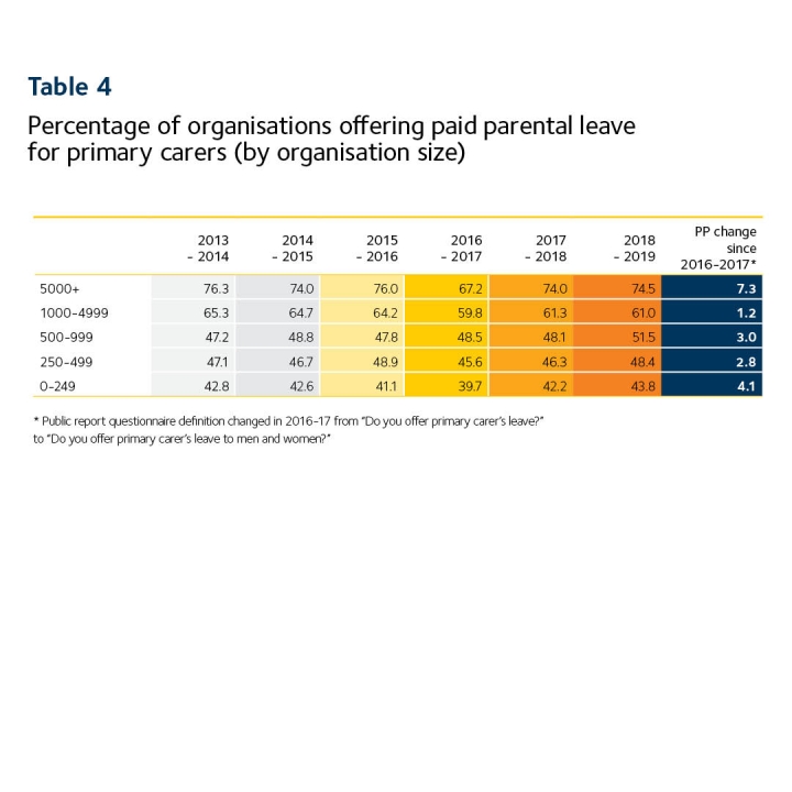 The other great news is that over 75% of our employers now have a gender equality strategy or policy in place. That has gone up over the last five or six years by about 10 or 11 percentage points. To have three quarters of all of organisations with a policy or strategy in place is great. It means they have at least thought about it and they are hopefully doing something about it.