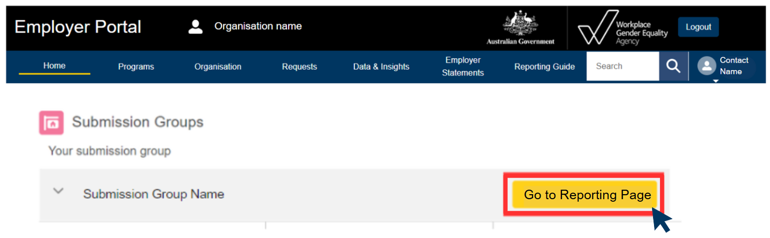 Note: If you are part of a corporate group, you may need to select 'Go to Reporting Page'