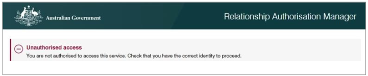 - Refer to Relationship Authorisation Manager for further assistance or contact RAM support when you see errors such as the one below.