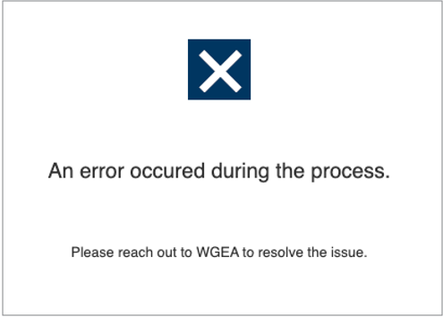 - If the error on the screen specifically states to ‘contact WGEA’ or contains the phrase 'force.com error' such as those displayed in the examples below.